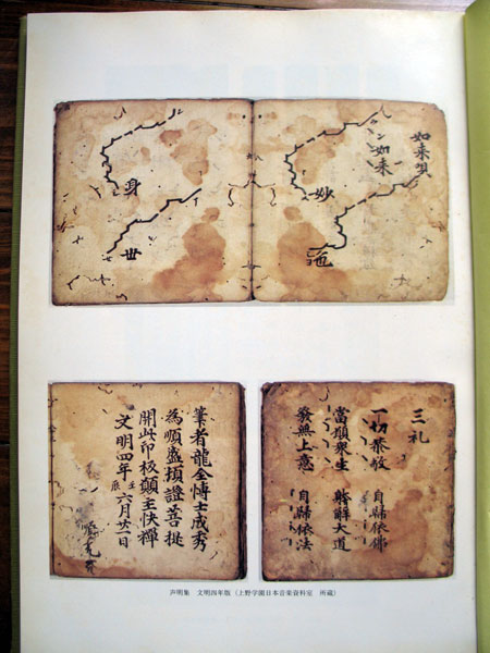9世紀の始めに弘法大師空海が「真言声明」、中頃には慈覚大師円仁が「天台声明」を中国から伝え、宗派ごとに独自の発展をしてきました。声明が一番発達したのは平安時代の末から鎌倉時代にかけてです。この時代に声明の音楽理論、記譜法、楽譜集、教授法などが整備されました。1472年には声明の楽譜集『文明4年版声明集』が高野山で出版され、これが現存する世界最古の印刷された楽譜集と言われています。この印刷楽譜によって声明も全国に普及しました。ちなみにグレゴリアン聖歌の印刷楽譜は1473年の出版ですから、一年早かった(笑)。このように、音楽史といえば皆さんはすぐ西洋音楽と思いがちですが、日本には世界の音楽史上大変貴重な文献がたくさん残っています。 - どのような曲がありますか?